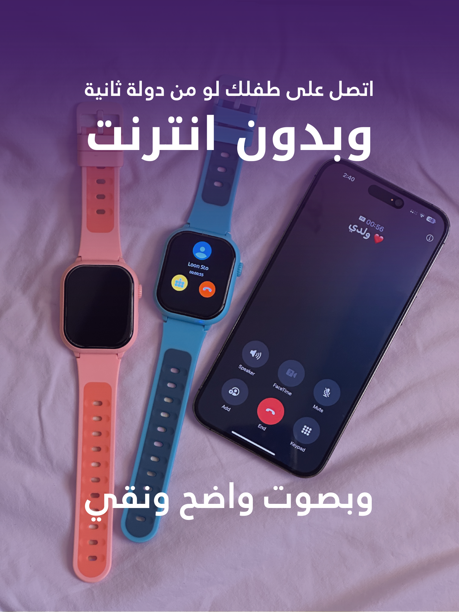أول ساعة تخليك تتواصل مع طفلك في أي وقت، ومن أي مكان بدون حدود للمسافة! مع خاصية إخفاء الكاميرا